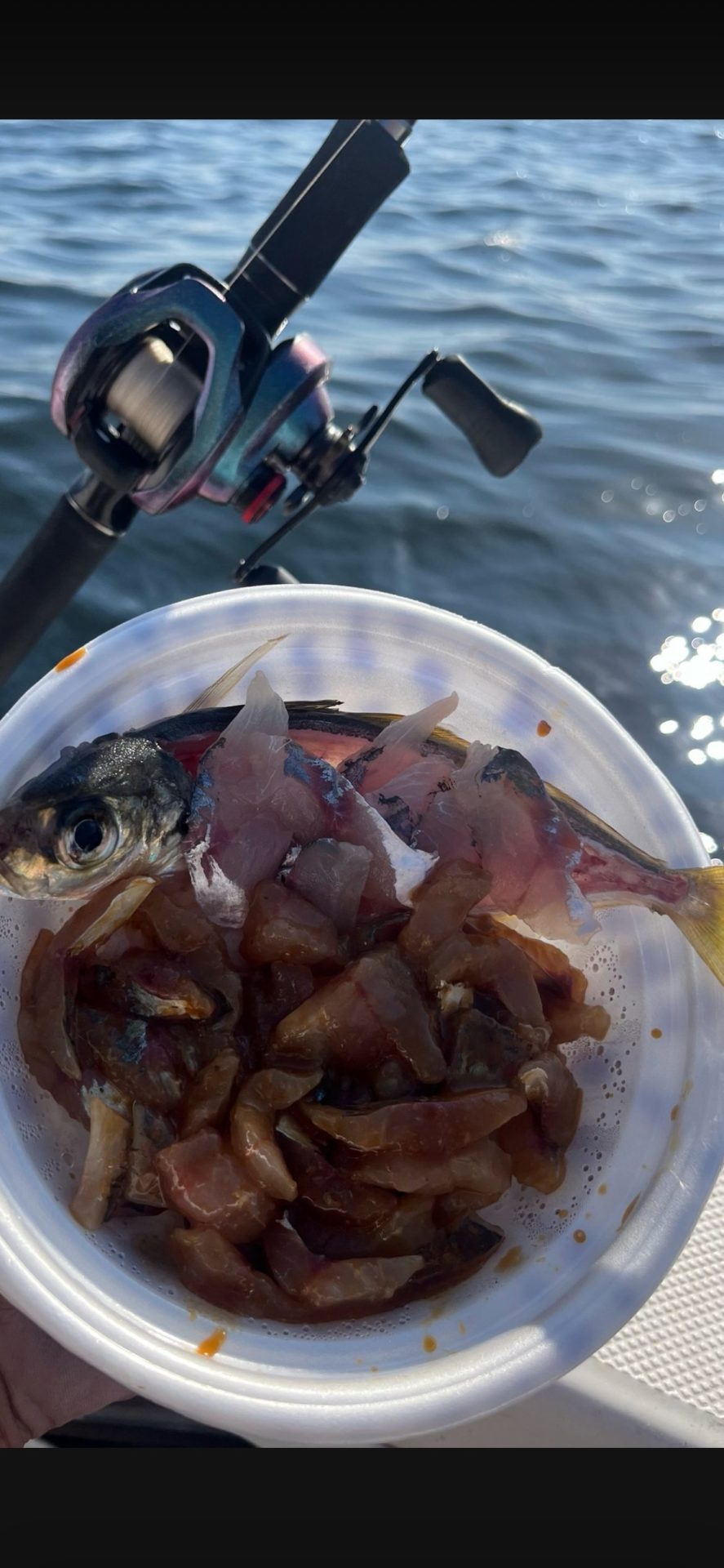 イシモチプランで釣れた魚を船上で